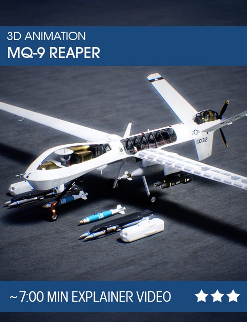 Perfekt für Luftfahrtbegeisterte, militärische Fachvorträge, Dokumentationen oder Lehrmaterial – diese 3D-Animation macht die Technologie hinter der MQ-9 Reaper anschaulich und greifbar.